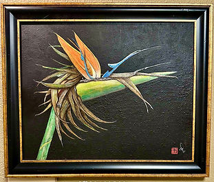 The paintings become iridescent at night and change colors depending on the light source. Awesome, not planned.